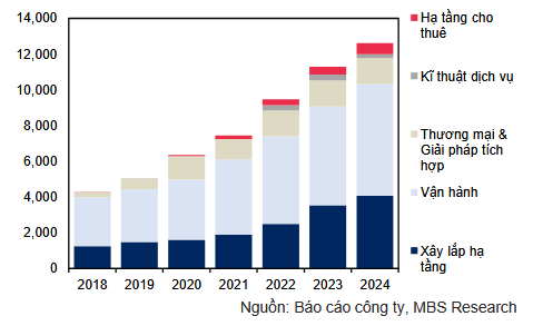 Mảng vận hành khai thác được dự báo tăng trưởng khiêm tốn trong thời gian tới do khối lượng vận hành cho tập đoàn Viettel theo hợp đồng ký từ 2024 không đổi (theo ĐHCĐ 2025). Động lực tăng trưởng của mảng này đến từ các hợp đồng xúc tiến đến các khách hàng mới ngoài tập đoàn như CMC Telecom...